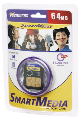 The Memorex 64 MB SmartMedia Memory Card is a type of solid-state flash memory card, primarily used in older digital cameras, PDAs, and other portable devices. It offers 64 megabytes of storage capacity for digital data such as photos, audio, or documents.