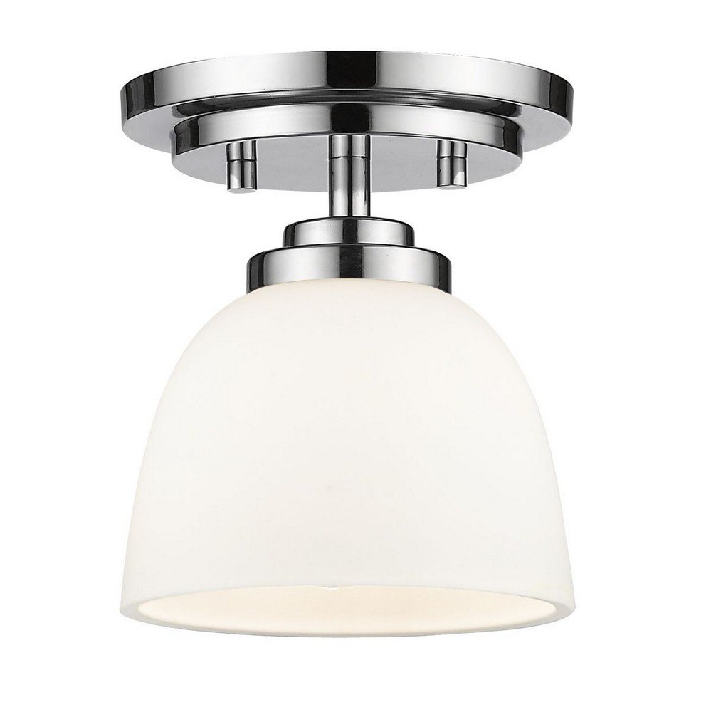 Image: Z-Lite 7.25 inch Flush Mount Light. This image displays the complete fixture, featuring a chrome-finished base and a matte opal glass shade, ready for installation.