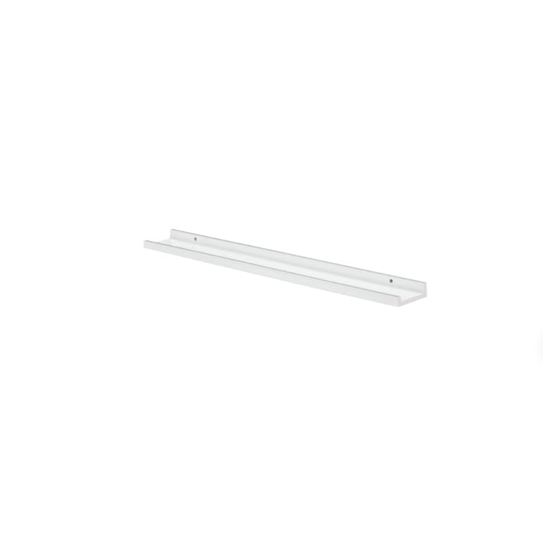 Image: Dolle Border Shelf, white, mounted on a blue wall, displaying decorative items.