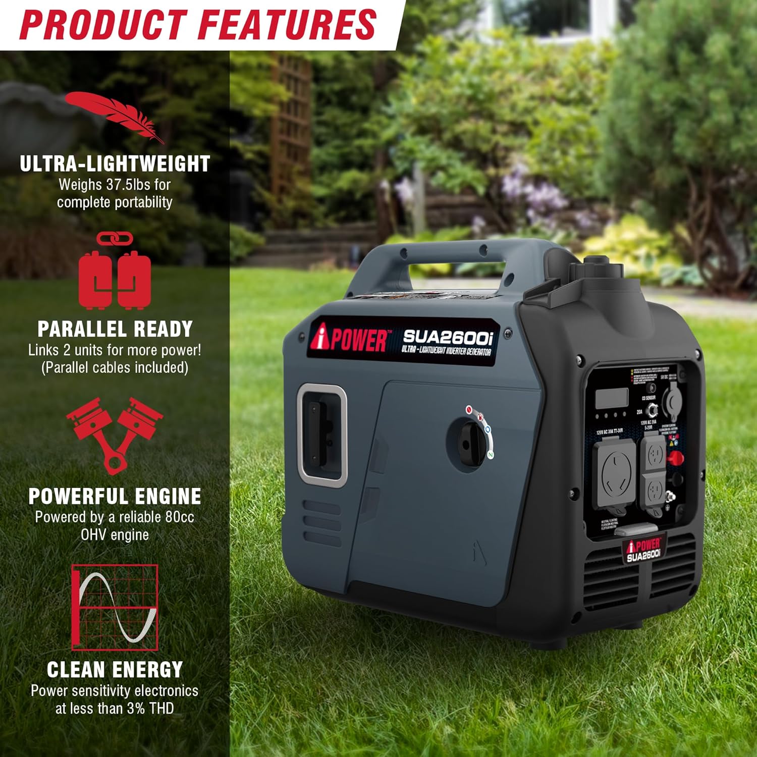 Thank you for choosing the A-iPower SUA2600i Quiet Inverter Generator. This generator is designed to provide reliable, clean power for various applications, including camping, tailgating, RV use, and home backup. Its lightweight design, quiet operation, and advanced safety features make it an excellent choice for powering sensitive electronics and essential appliances.