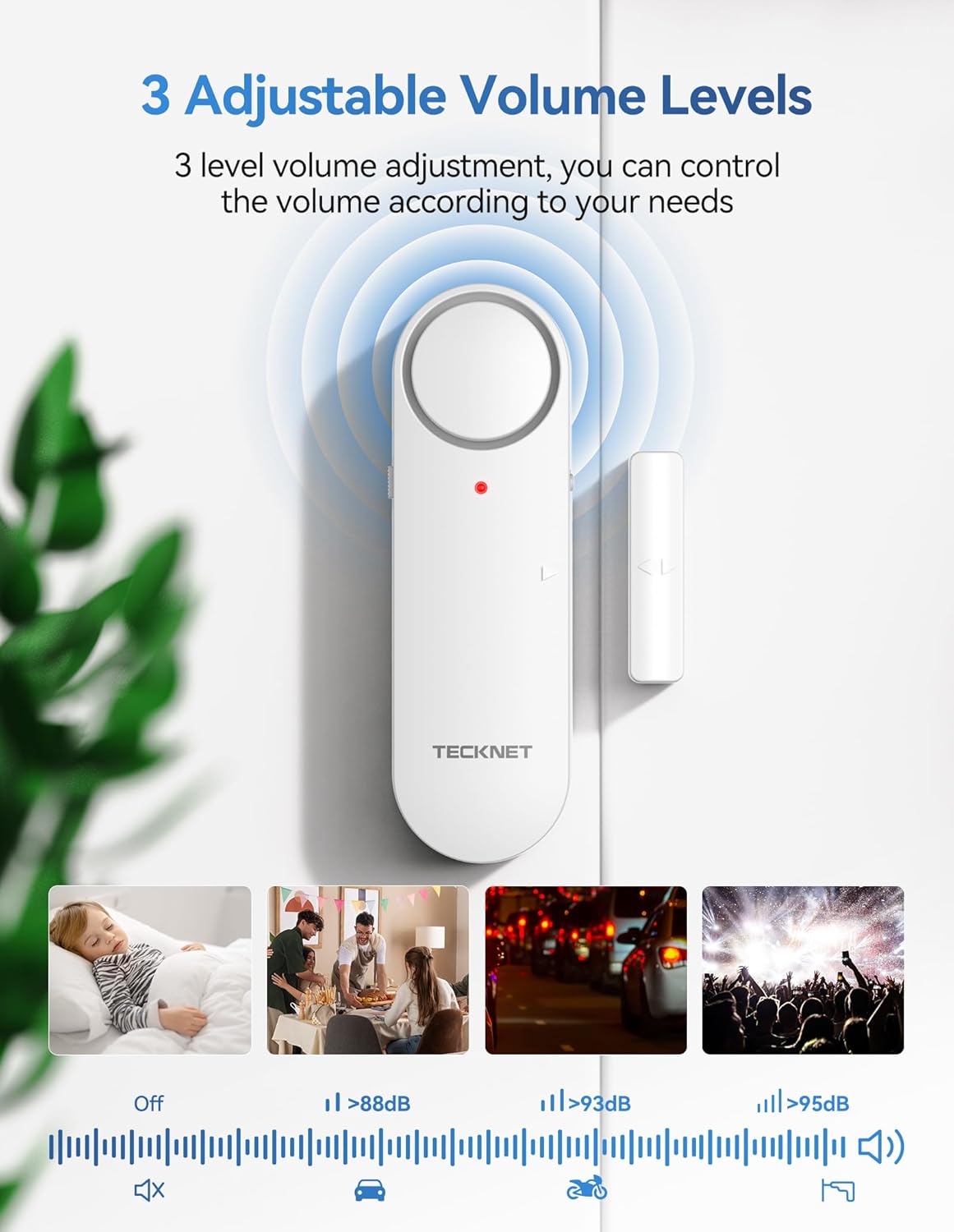 The TECKNET TK-WA701 Door/Window Alarm System is designed to enhance the security of your home or property. This versatile device functions as both an alarm and a chime, providing alerts when a door or window is opened. It features adjustable volume levels and is suitable for various applications, including homes, apartments, garages, and for ensuring kids' safety.